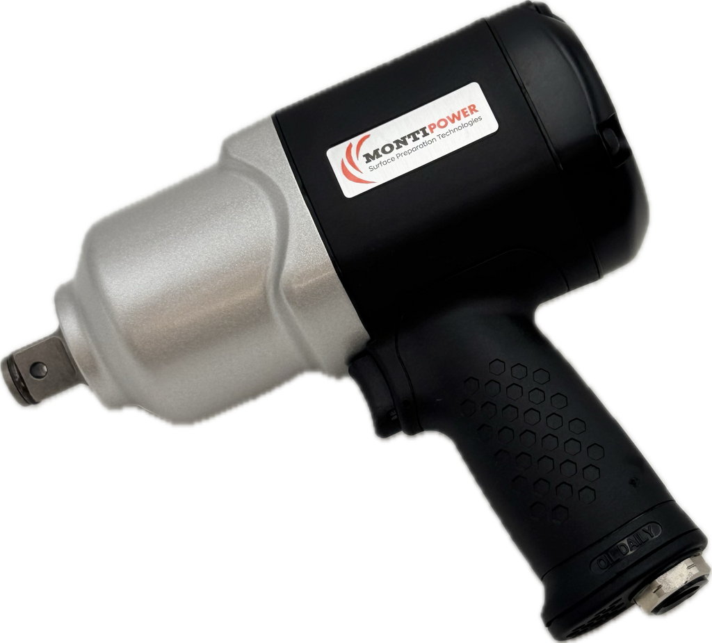 Moderner Schlagschrauber mit geringem Leistungsgewicht, aus Komposit-Verbundwerkstoff und hochlegierten Schlagwerkkomponenten, robuster, leichtläufiger Motor, starkes Lösemoment und optimal abgestimmter 3-Stufenregulierung im Rechtslauf. Schlagschrauber wird pneumatisch betrieben.