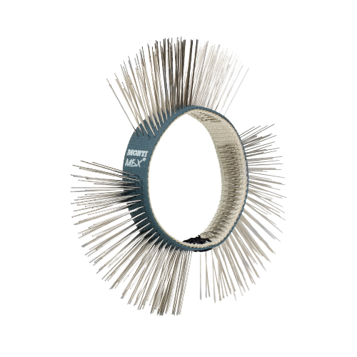 MONTI MBX® Flexible Edelstahlbürstenbänder 11 mm für den Einsatz auf MBX®-Maschinen (sowohl elektrische als auch pneumatische Maschinen). Hervorragend geeignet zum Entfernen von Farbe und Korrosion auf dünnen Nichteisenoberflächen wie Aluminiumkarosserien, insbesondere beim Vernageln von Karosserien.
