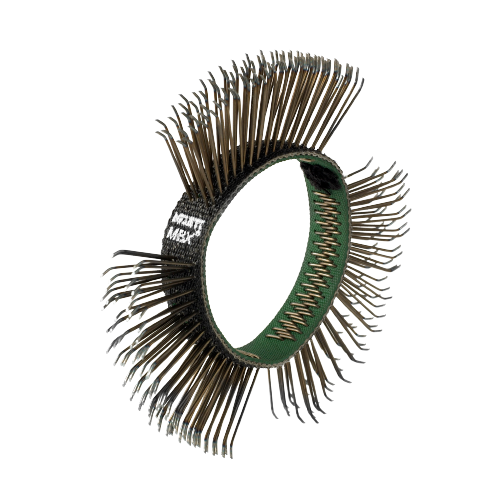 MONTI MBX® Flexible Stahlbürstenbänder 11 mm für den Einsatz auf MBX®-Maschinen (sowohl elektrische als auch pneumatische Maschinen). Hervorragend geeignet zum Entfernen von Farbe und Korrosion auf dünnen Eisenoberflächen wie Stahlkarosserien, insbesondere beim Vernageln von Karosserieteilen.